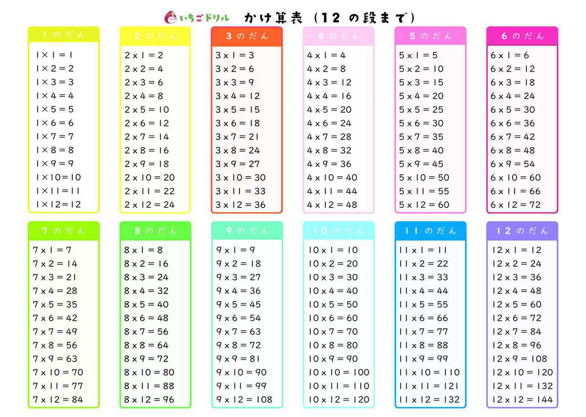 【無料ダウンロード】かけ算九九表プリント|シンプル・かわいい・12の段 | いちごドリル